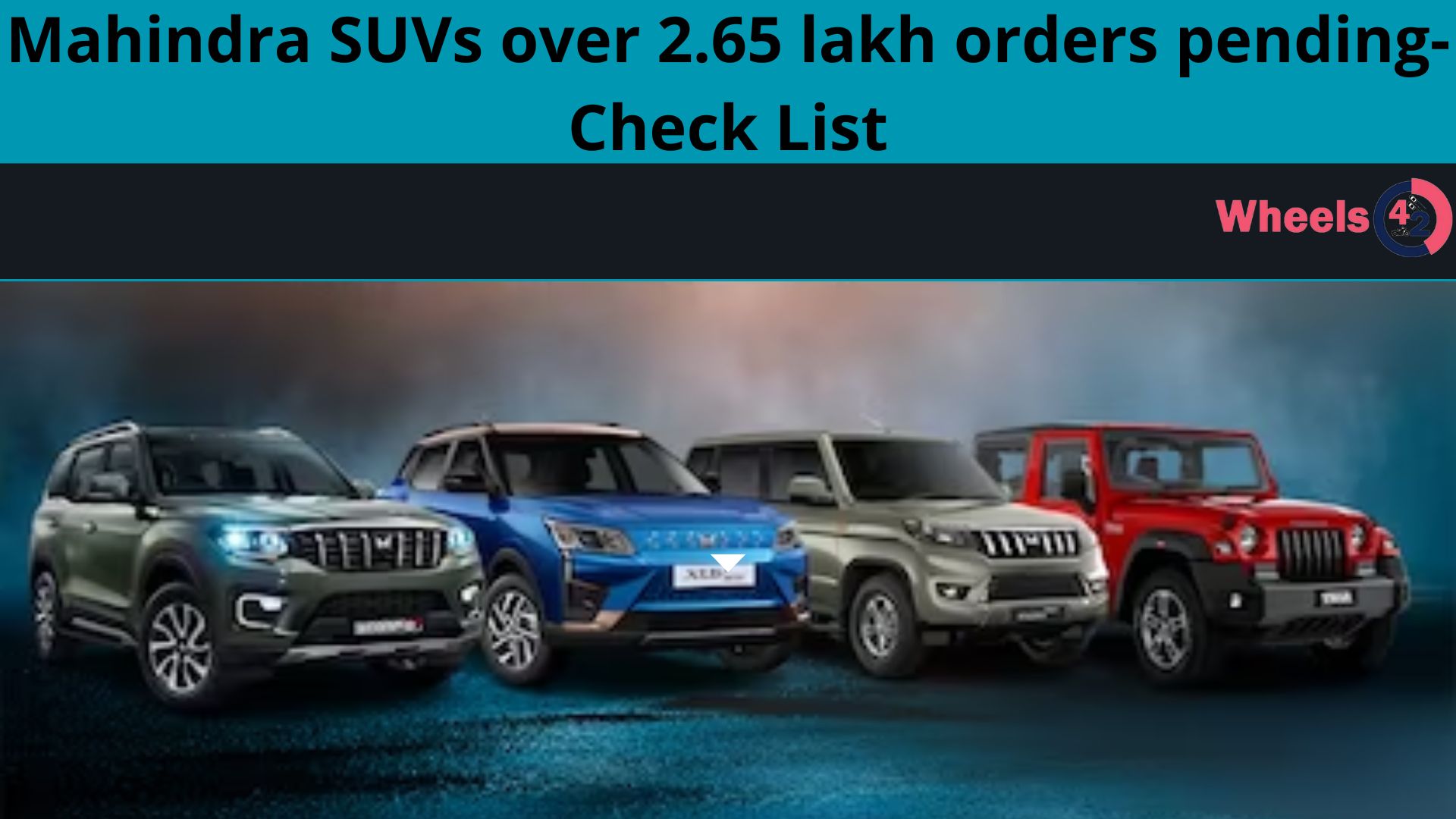 यहाँ से पूरी लिस्ट चेक कीजिये की Mahindra SUVs की 2.65 lakh से ज्यादा orders कैसे pending है| जो लोग Mahindra की कोई भी SUV खरीदने के बारे में सोच रहे है तो उनकी जानकारी के लिए बता दे कि उन्हें उसकी डिलीवरी के लिए लंबा इंतजार करना पड़ सकता है। दर असल बात यह है कि महिंद्रा के पास 1 फरवरी 2023 तक 2.65 लाख से ज्यादा ऑर्डर लंबित है। महिंद्रा को हर महीने औसत 50,700 बुकिंग मिल रही है। फ़िलहाल लगभग सभी SUV की शानदार डिमांड है। खासकर Scorpio की सबसे ज्यादा डिमांड है। ना सिर्फ Scorpio बल्कि उसके साथ हम यहा आपको XUV700, थार, XUV300, XUV400, Bolero, Bolero Neo की बुकिंग ऑर्डर के बारे में भी बता रहे हैं। यानी की कंपनी को जितनी बुकिंग मिल रही हैं उतने ही ऑर्डर लंबित भी हैं।