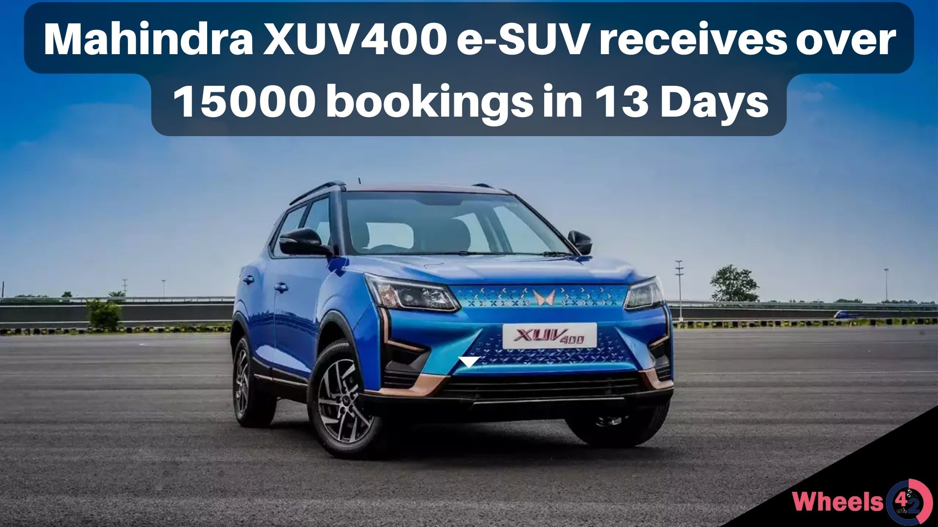 देश में ईवी की बढ़ती मांग के साथ, महिंद्रा ने 16 जनवरी 2023 को अपनी पहली इलेक्ट्रिक एसयूवी एक्सयूवी400 लॉन्च की है। निर्माता ने 26 जनवरी 2023 को इलेक्ट्रिक एसयूवी के लिए बुकिंग शुरू की। Mahindra XUV400 ने विस्तारित गणतंत्र दिवस सप्ताहांत में भारत के 34 शहरों में 10,000 से अधिक बुकिंग का एक मील का पत्थर पार कर लिया। Mahindra XUV400 e-SUV ने 13 दिनों में 15,000 बुकिंग बटोरी और XUV400 की डिलीवरी मार्च 2023 से शुरू होगी।