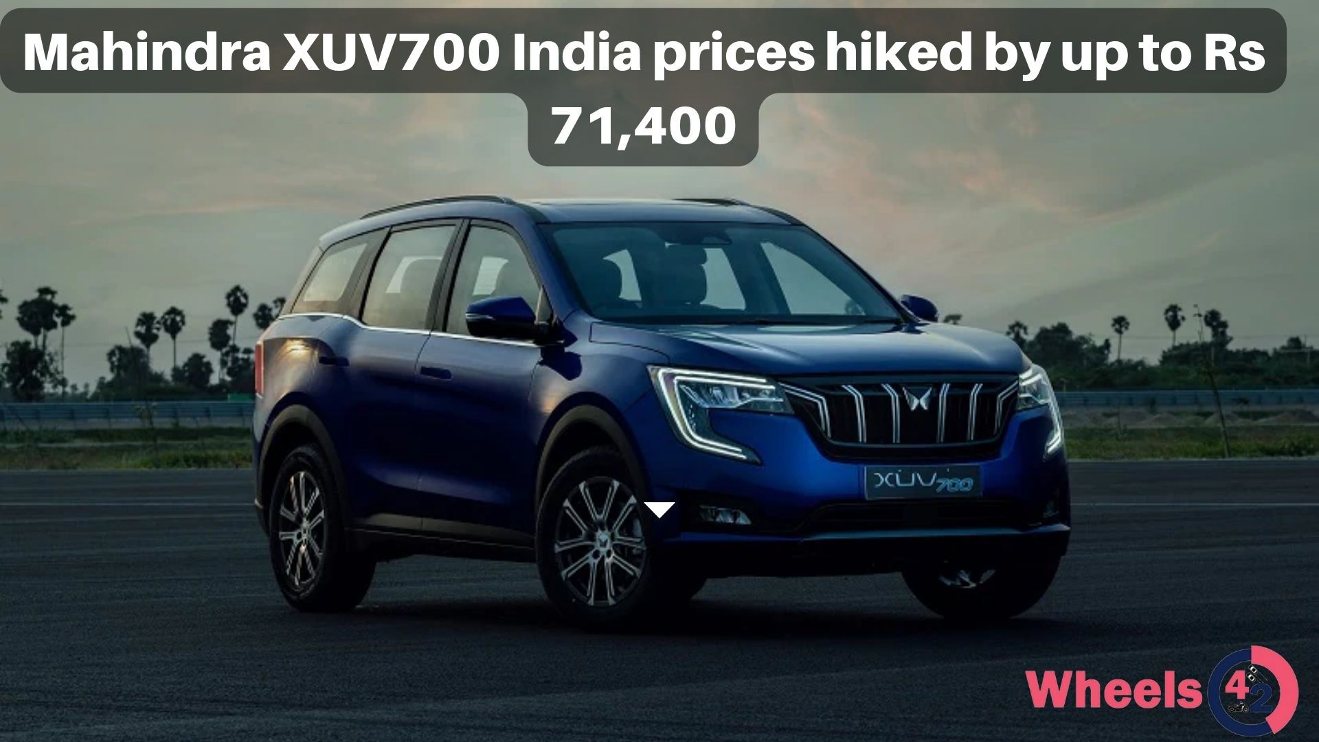 XUV700 SUV की कीमतों में 48,699 रुपये से लेकर 71,400 रुपये तक की बढ़ोतरी हुई है। मॉडल दो powertrain विकल्पों के साथ उपलब्ध है जिसमें 2.0-लीटर turbo-petrol मोटर और 2.2-लीटर डीजल इंजन शामिल है, जिसे six-speed manual और automatic transmissions के साथ जोड़ा गया है। ग्राहक MX, AX3, AX5, AX7 और AX7L नाम से पांच वेरिएंट में से चुन सकते हैं। चुनने के लिए पांच रंग विकल्प भी हैं।