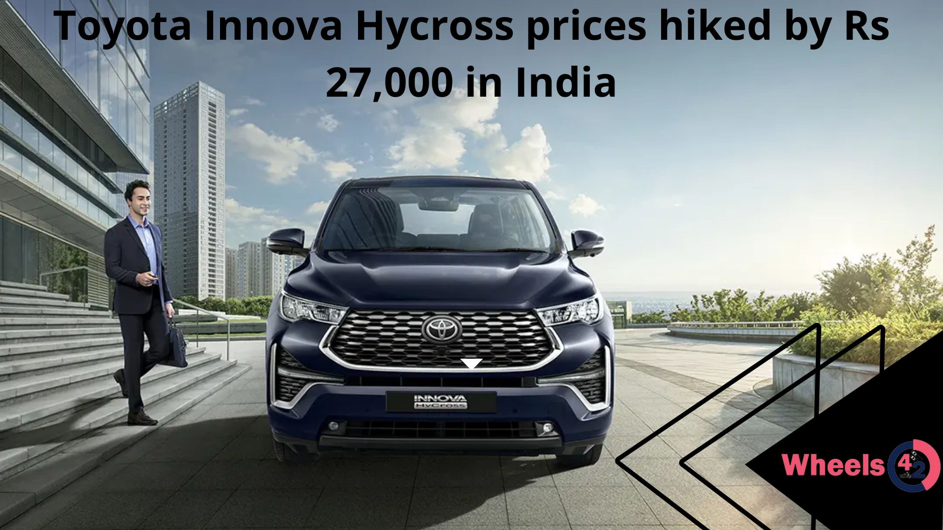Toyota Kirloskar Motor (TKM) ने Innova Hycross MPV की कीमतों में संशोधन किया है। इस साल model के लिए यह दूसरा मूल्य संशोधन है, जबकि पहली कीमत वृद्धि मार्च में हुई थी, जहां कीमतें 75,000 रुपये तक बढ़ गई थीं। Toyota Innova Hycross को चुनिंदा variants के लिए कीमतों में बढ़ोतरी मिली है और यह इस साल model के लिए दूसरी कीमत में बढ़ोतरी है। Toyota Innova Hycross की कीमतों में भारत में 27,000 रुपये की बढ़ोतरी- इस लेख को यहां से पढ़ें।
